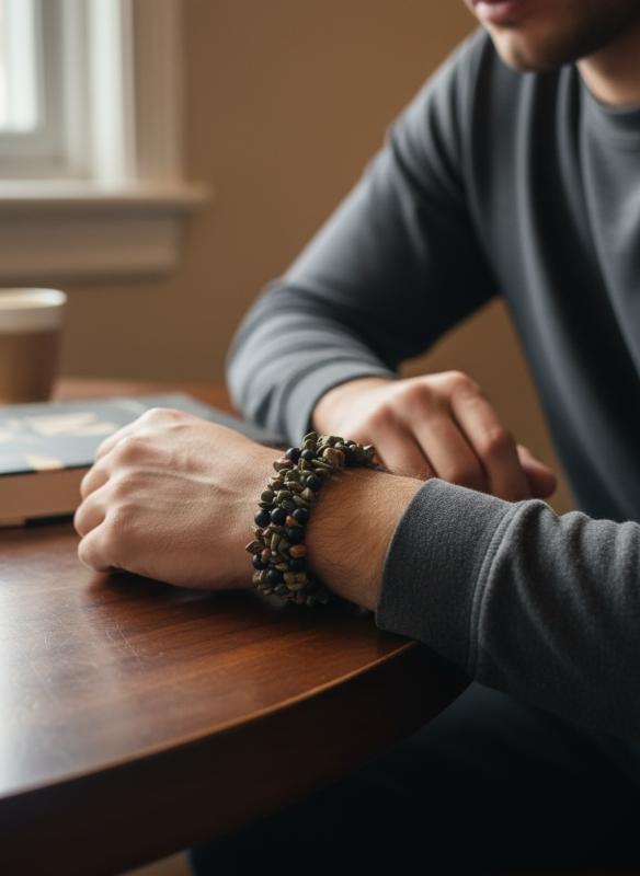 Metal components are carefully selected for sensitive wear. Stainless steel and sterling silver findings provide strength, resistance to tarnish and skin-safe performance for everyday use.