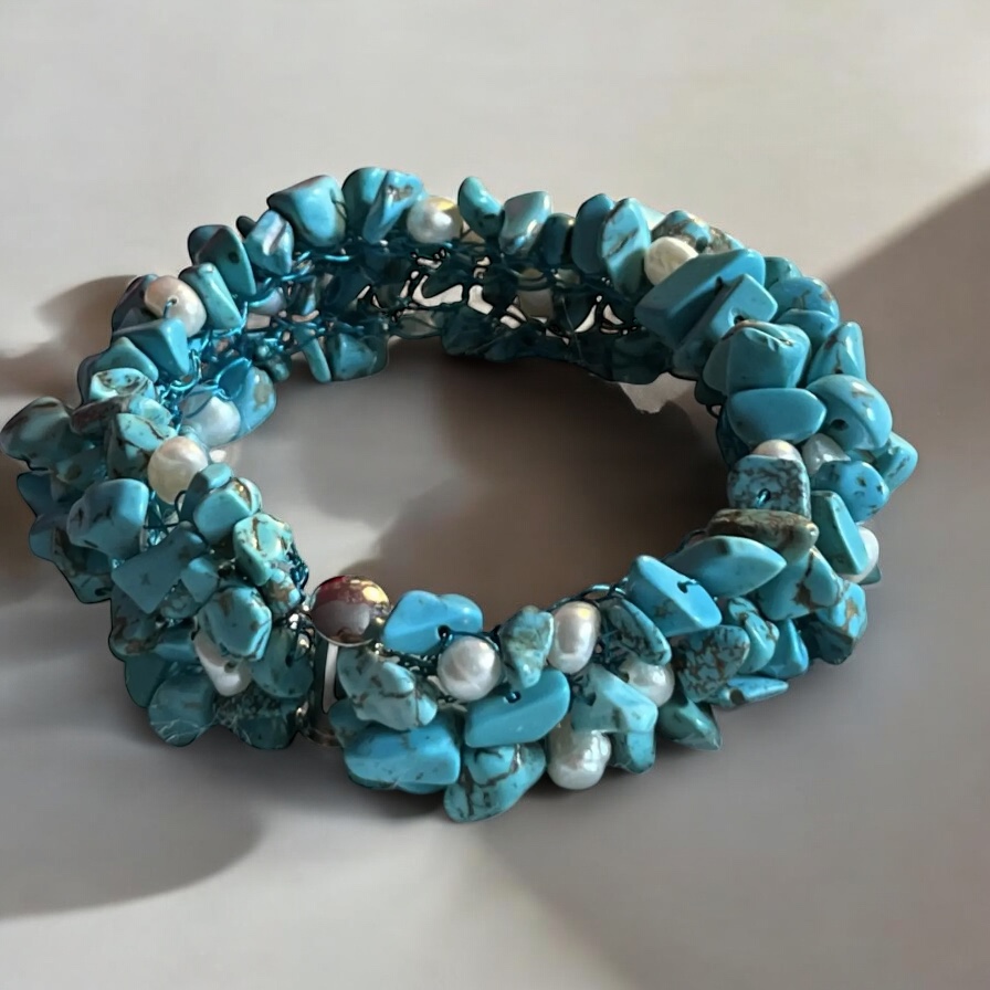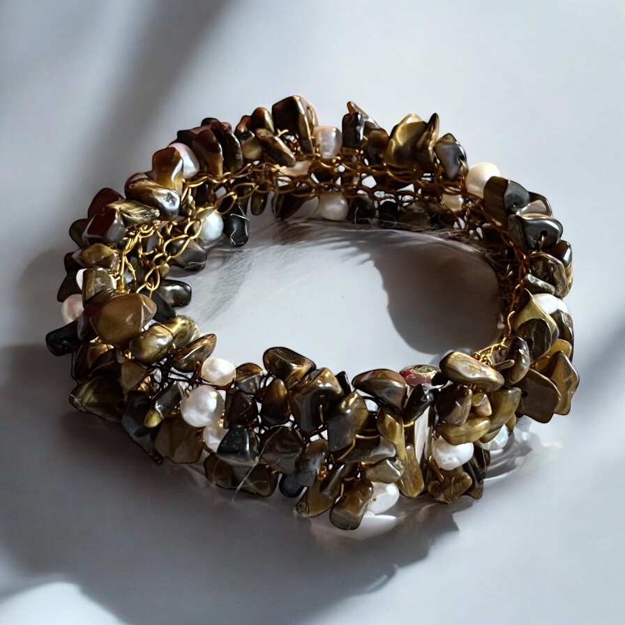 At Sarah-Valley Jewelry, we offer customisable freshwater pearl bracelets, allowing you to select your favourite gemstones for a truly personalised piece. Each bracelet is meticulously crafted to ensure both beauty and comfort. Available in multiple sizes, please check our sizing guide before purchase. Whether you’re looking for a subtle accent or a bold statement, our UK-based online store delivers handcrafted quality and sophistication. Explore our collection today and discover the perfect blend of artistry and elegance!Adorn your wrist with our exquisite hand-crocheted freshwater pearls bracelet, featuring genuine pearls and semi-precious stones for a luxurious touch. The bold one-inch height and slide barrel clasp make it a standout piece, perfect for adding elegance to any outfit. Hypoallergenic and customisable, choose your favourite gemstones for a unique, personalised design. A timeless statement piece from Sarah-Valley Jewelry UK.