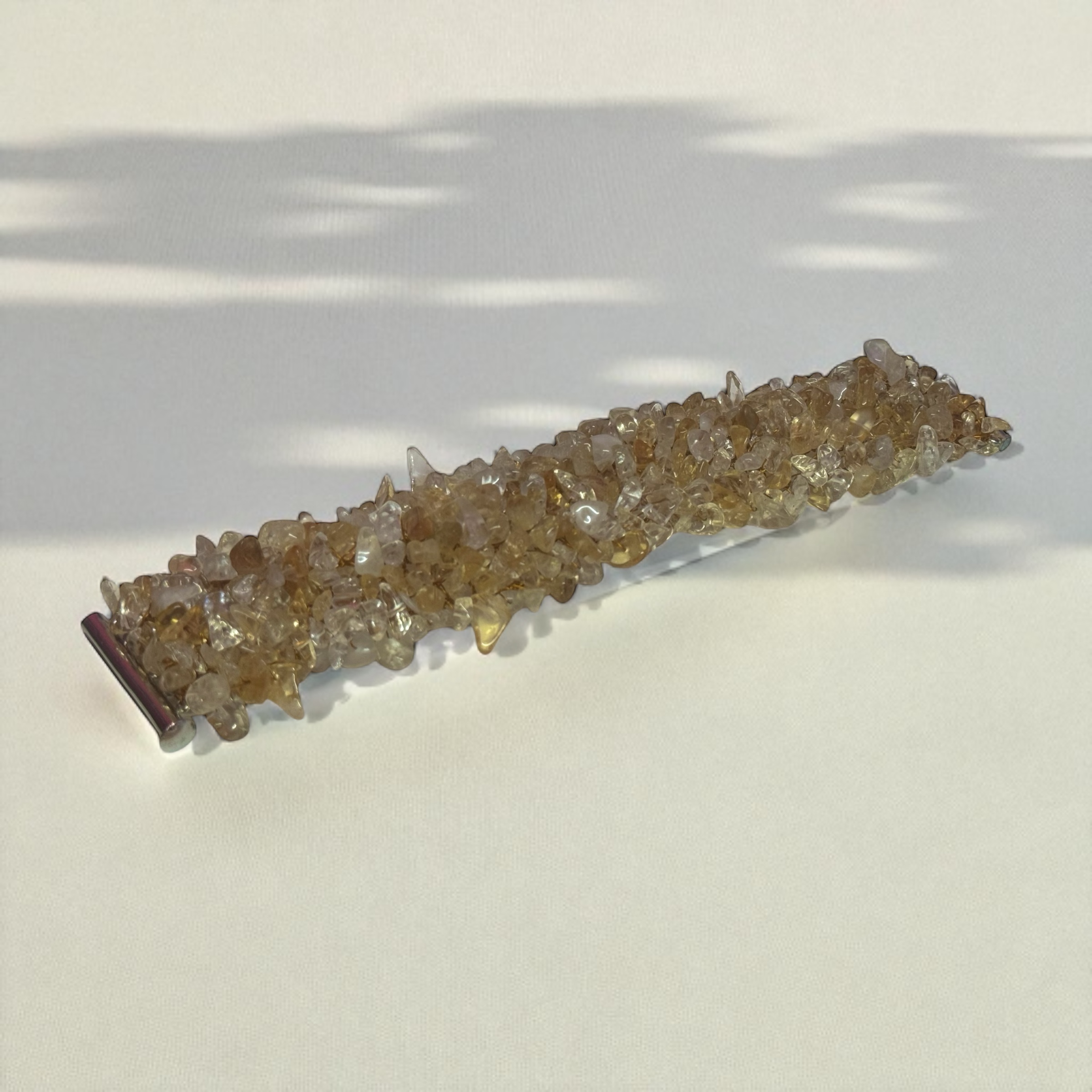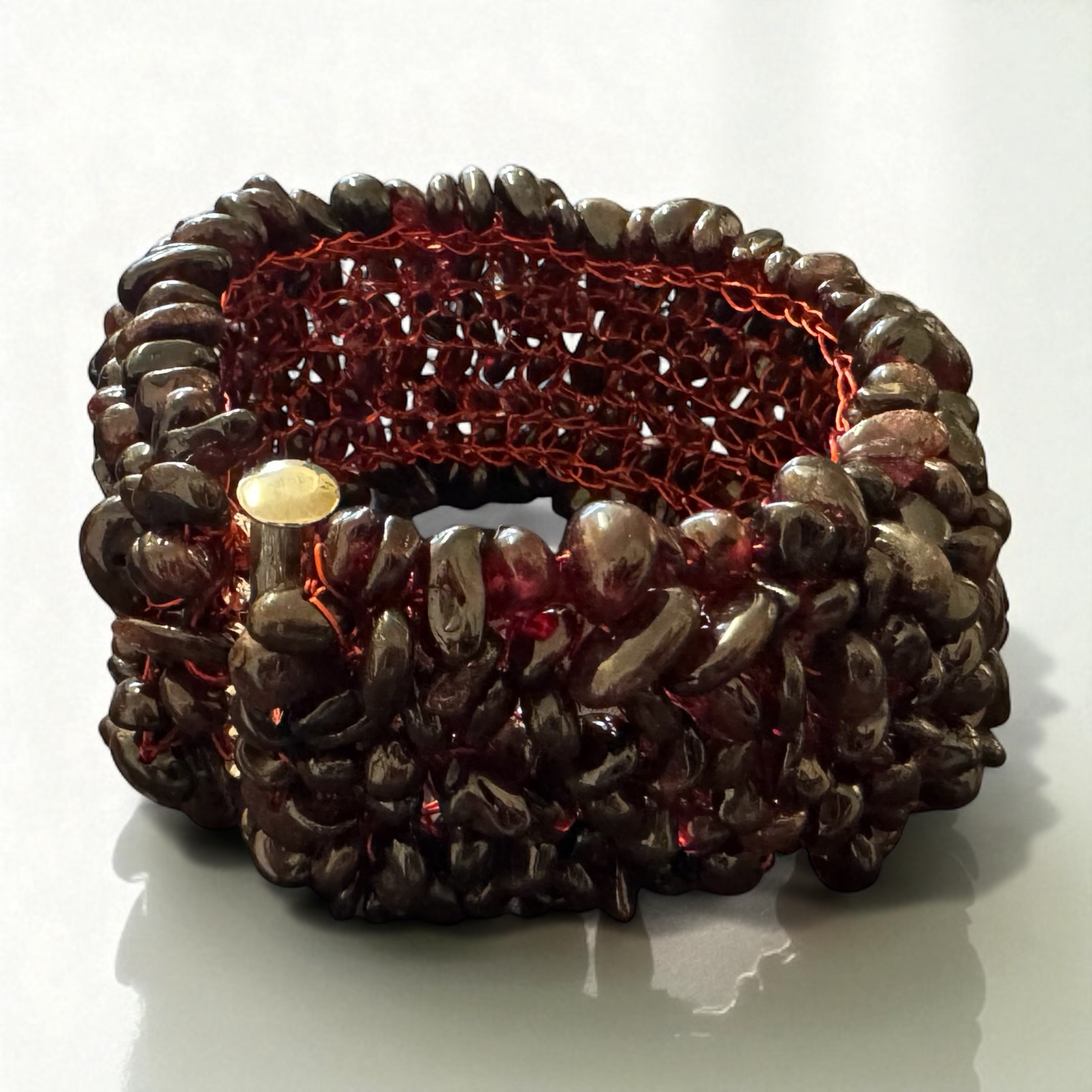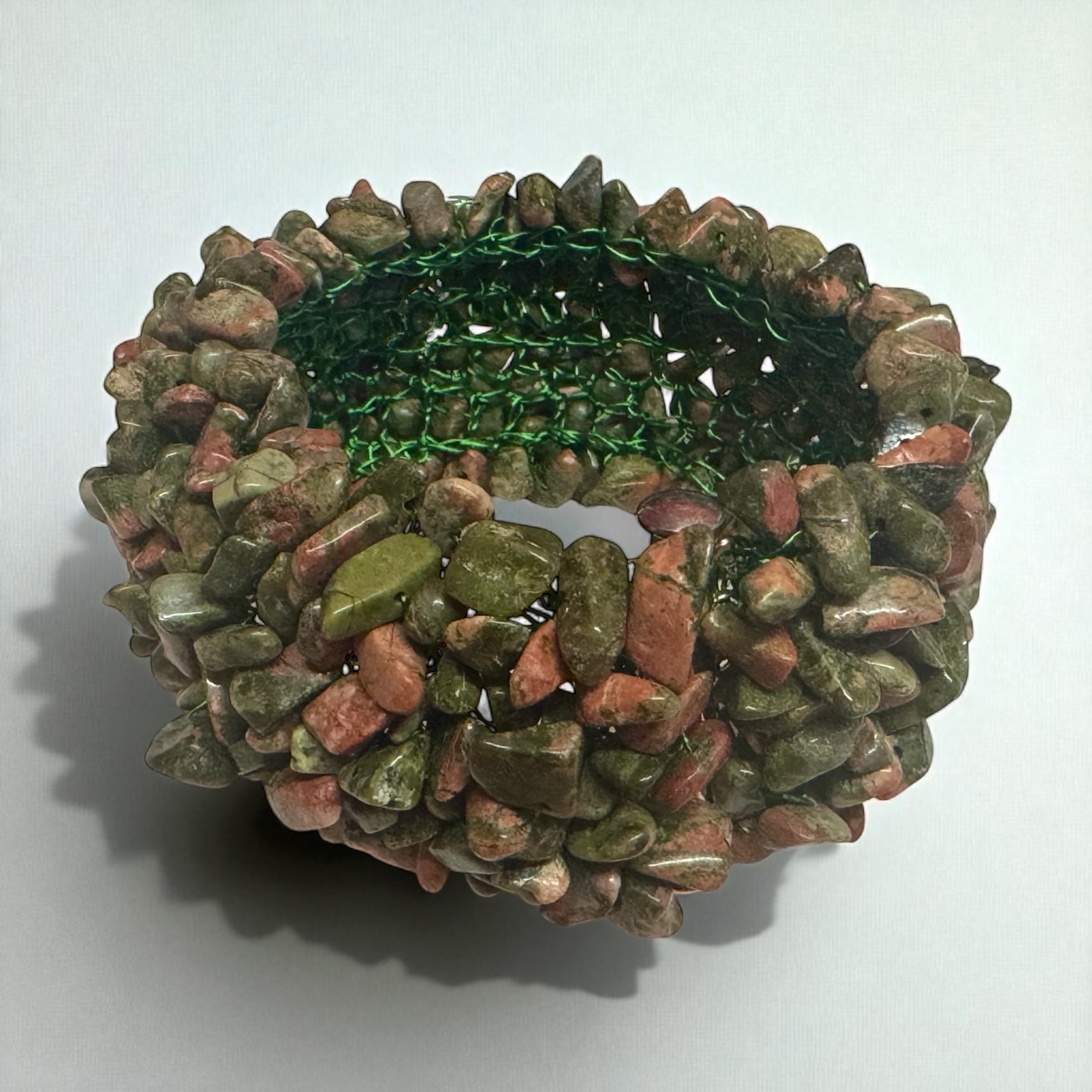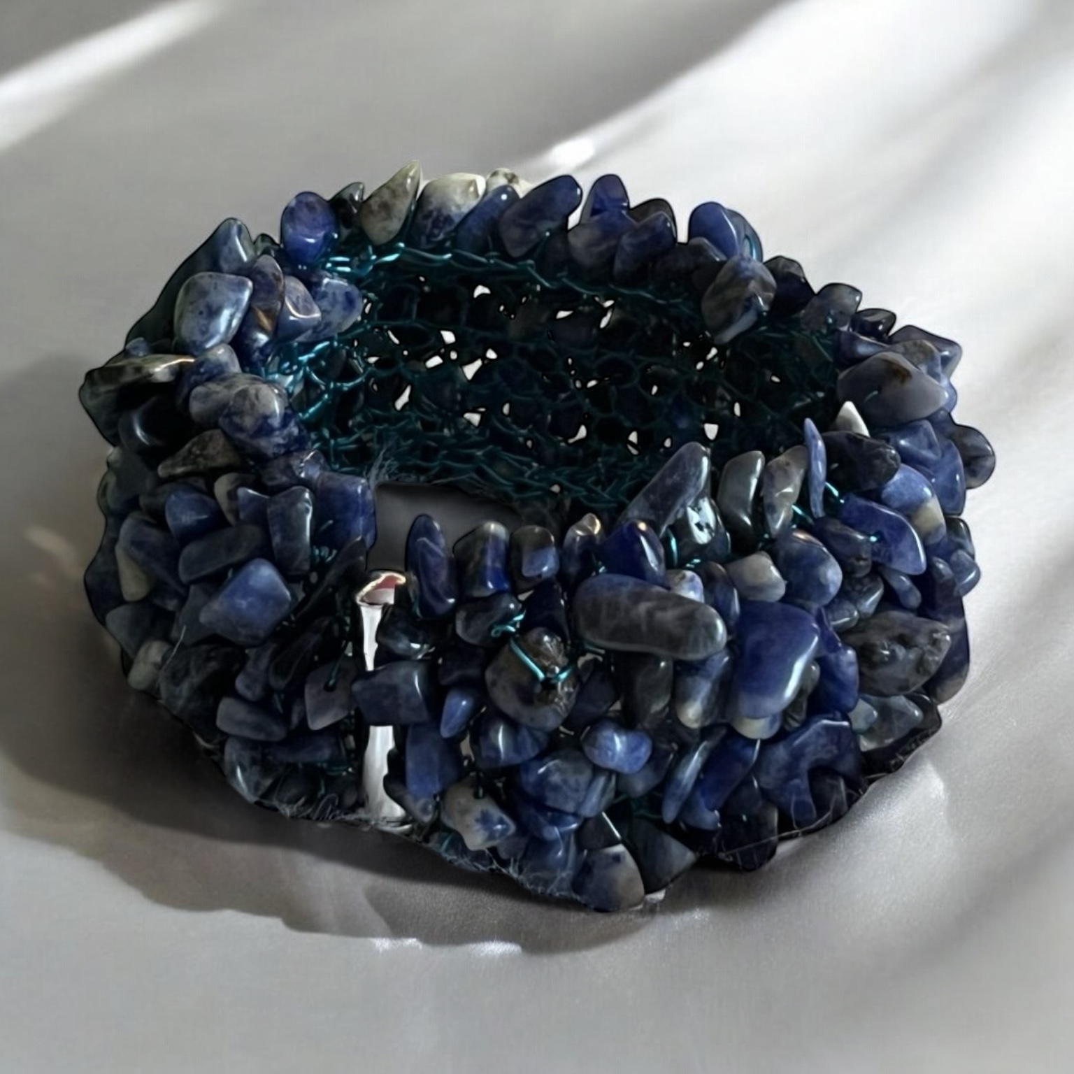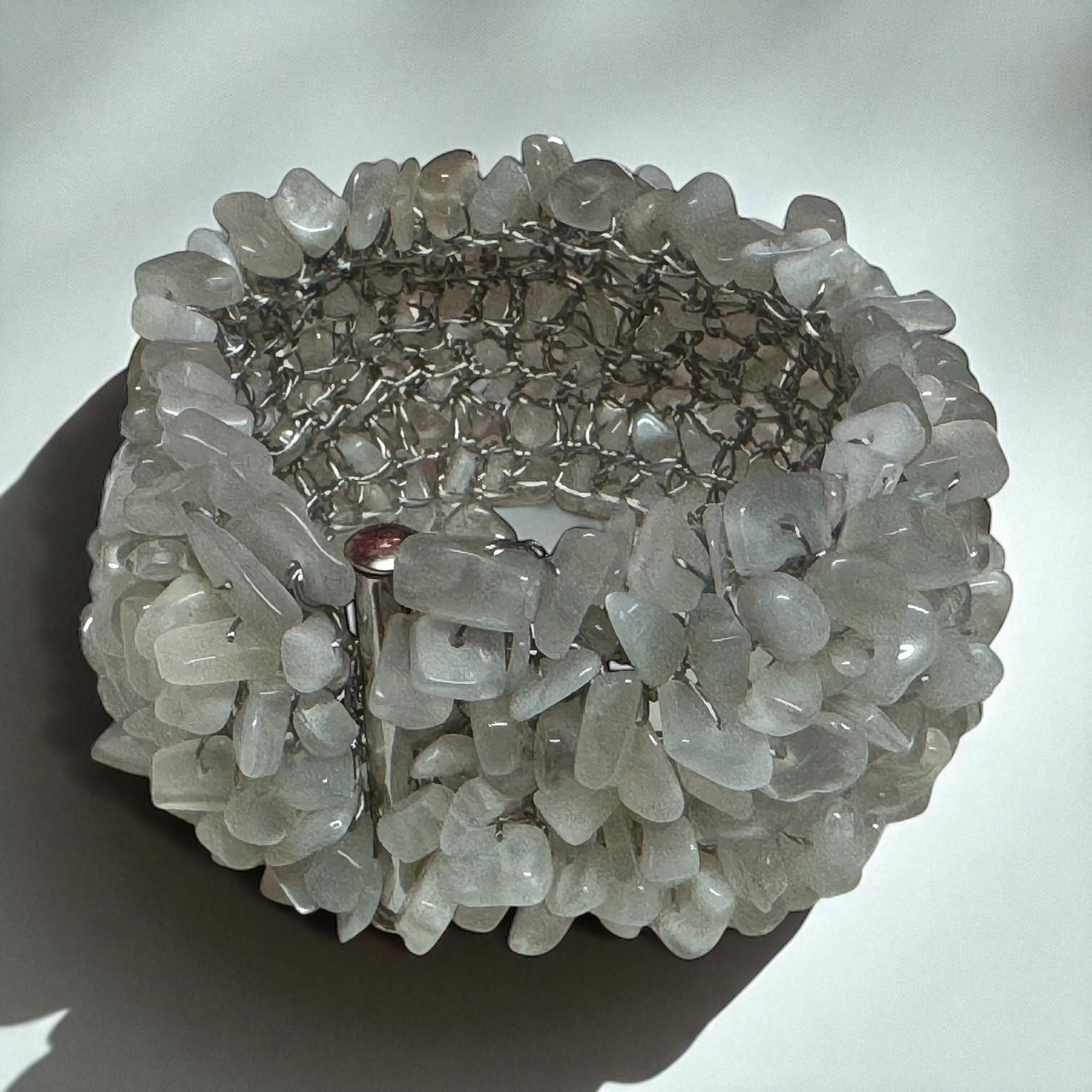 This Gemstone Cuff represents the pinnacle of Sarah Valley’s metalwork artistry. Meticulously handcrafted, each cuff begins with premium stainless steel wire shaped using our signature technique, then accented with your choice of ethically-sourced gemstone cut in distinctive geometric forms. The nickel-free brass clasp develops a rich patina over time, creating a living finish that grows more personal with wear.