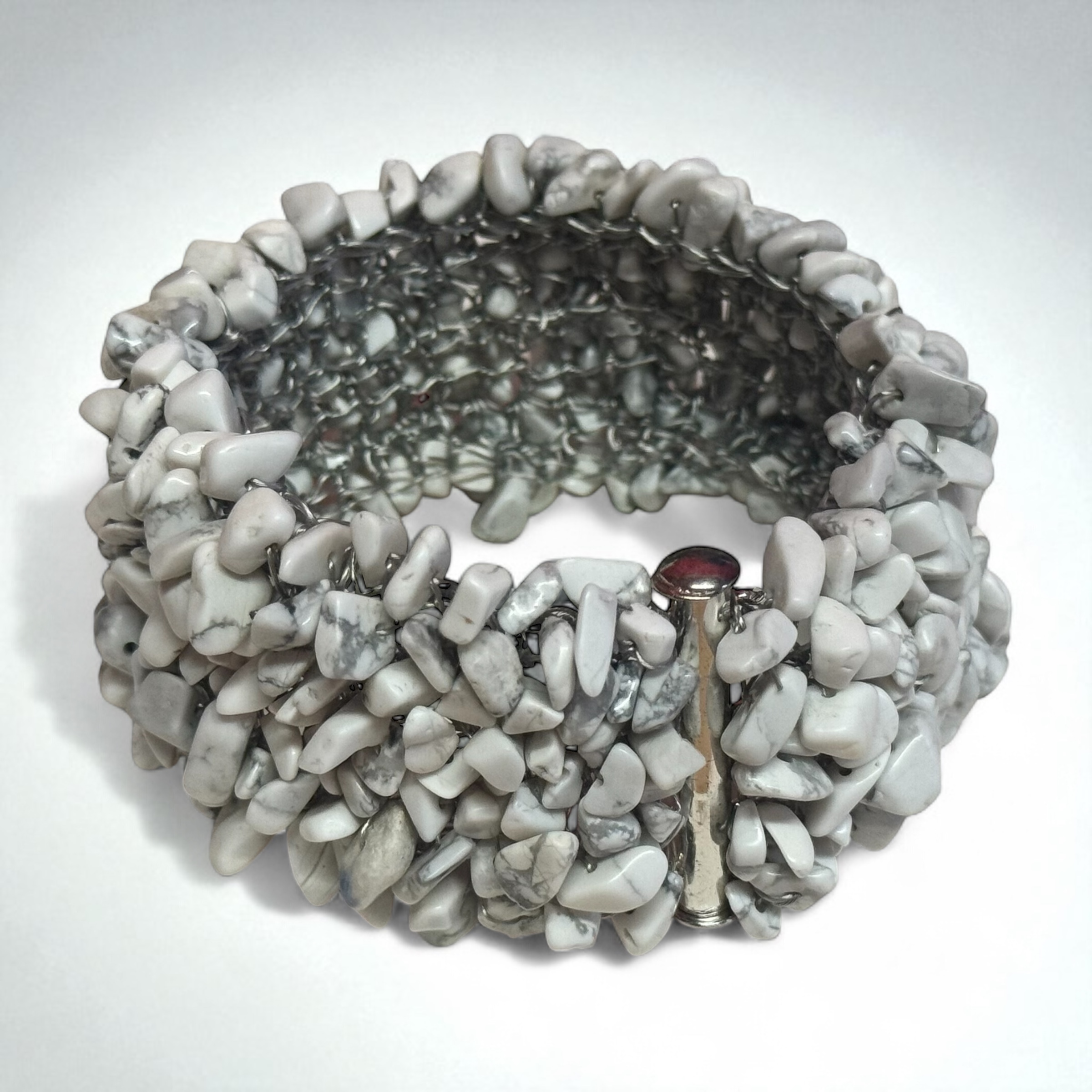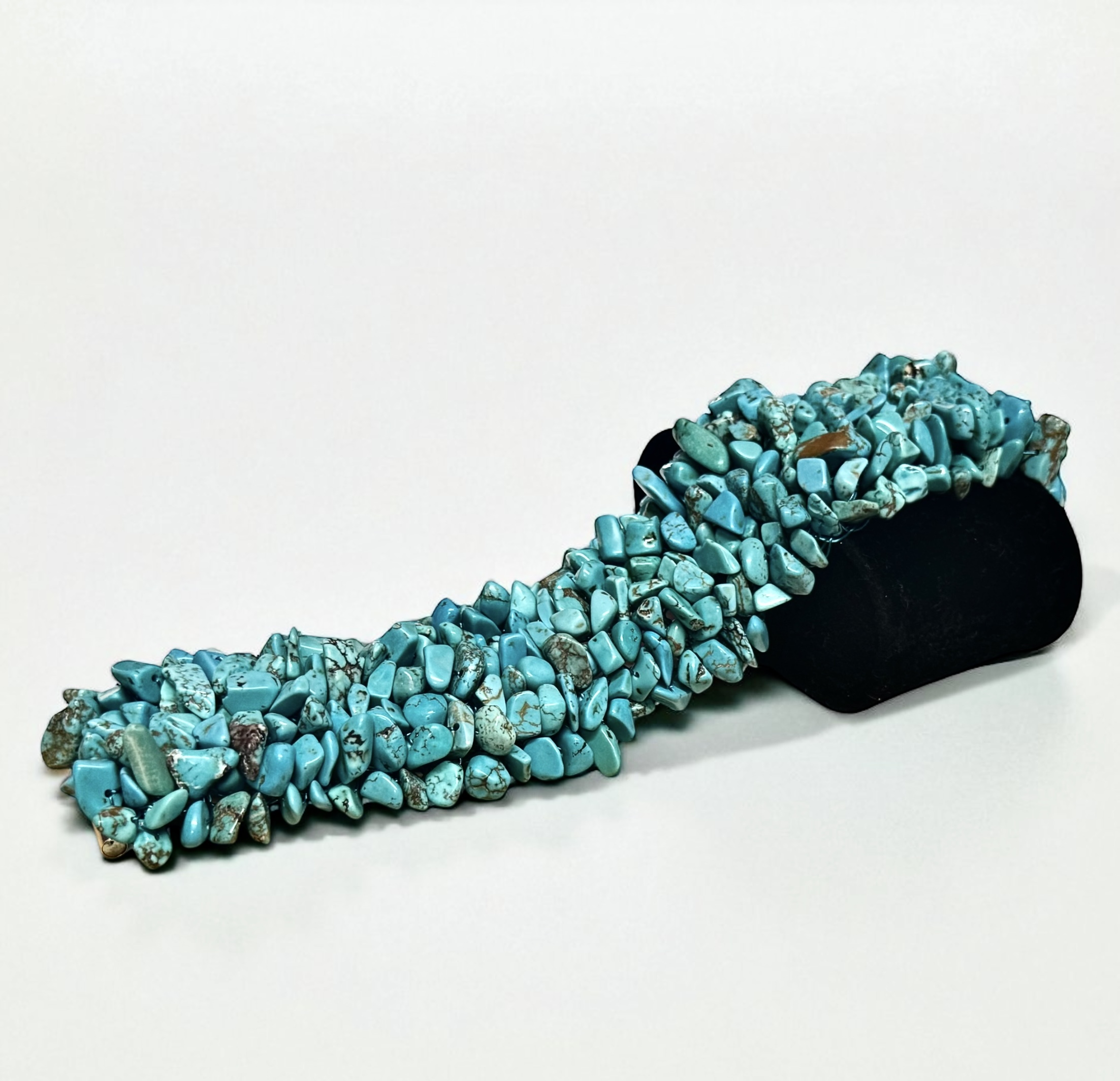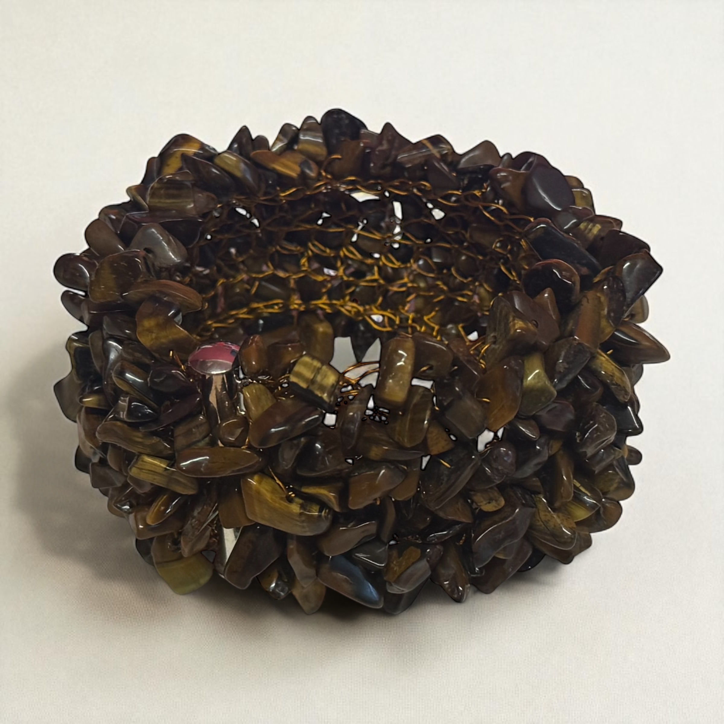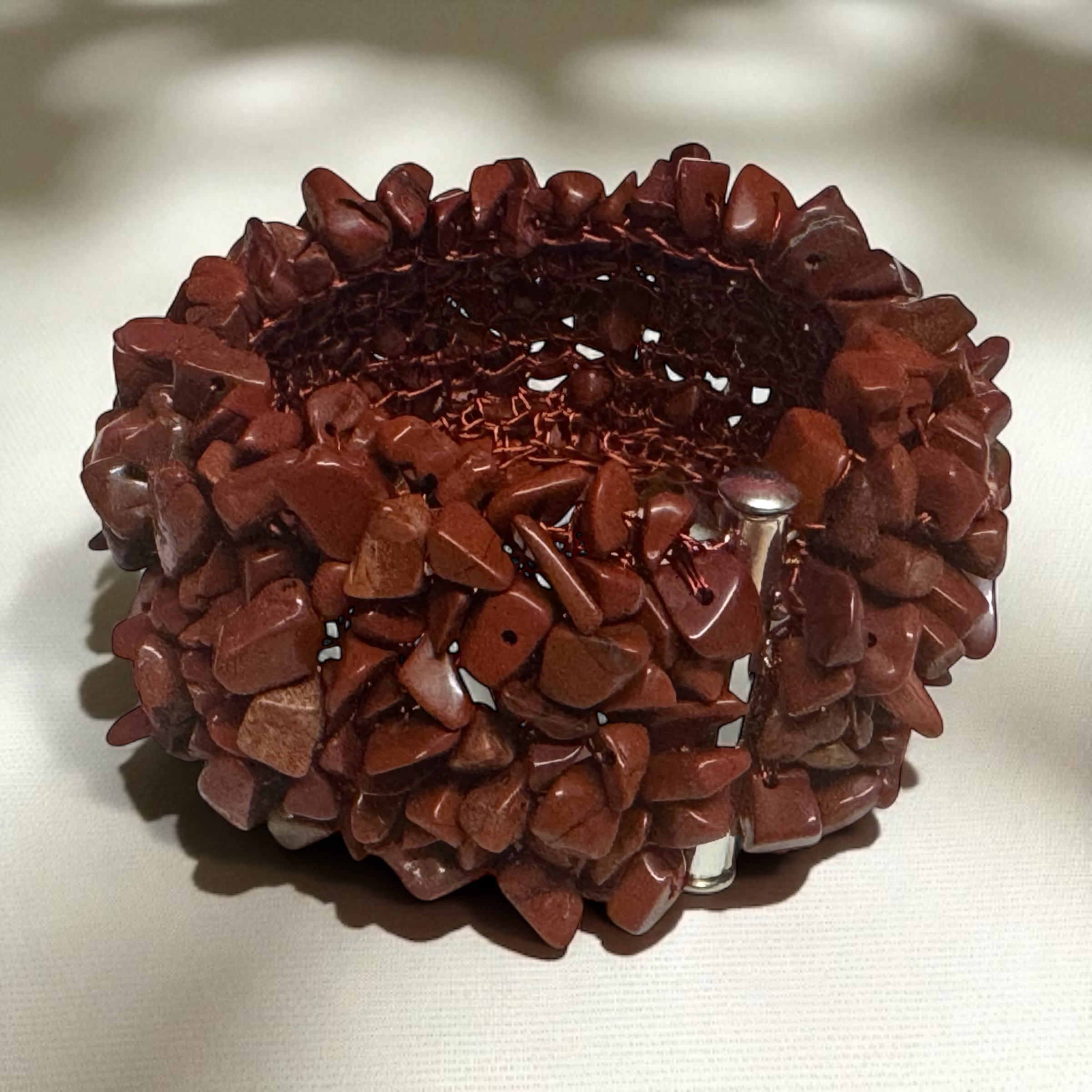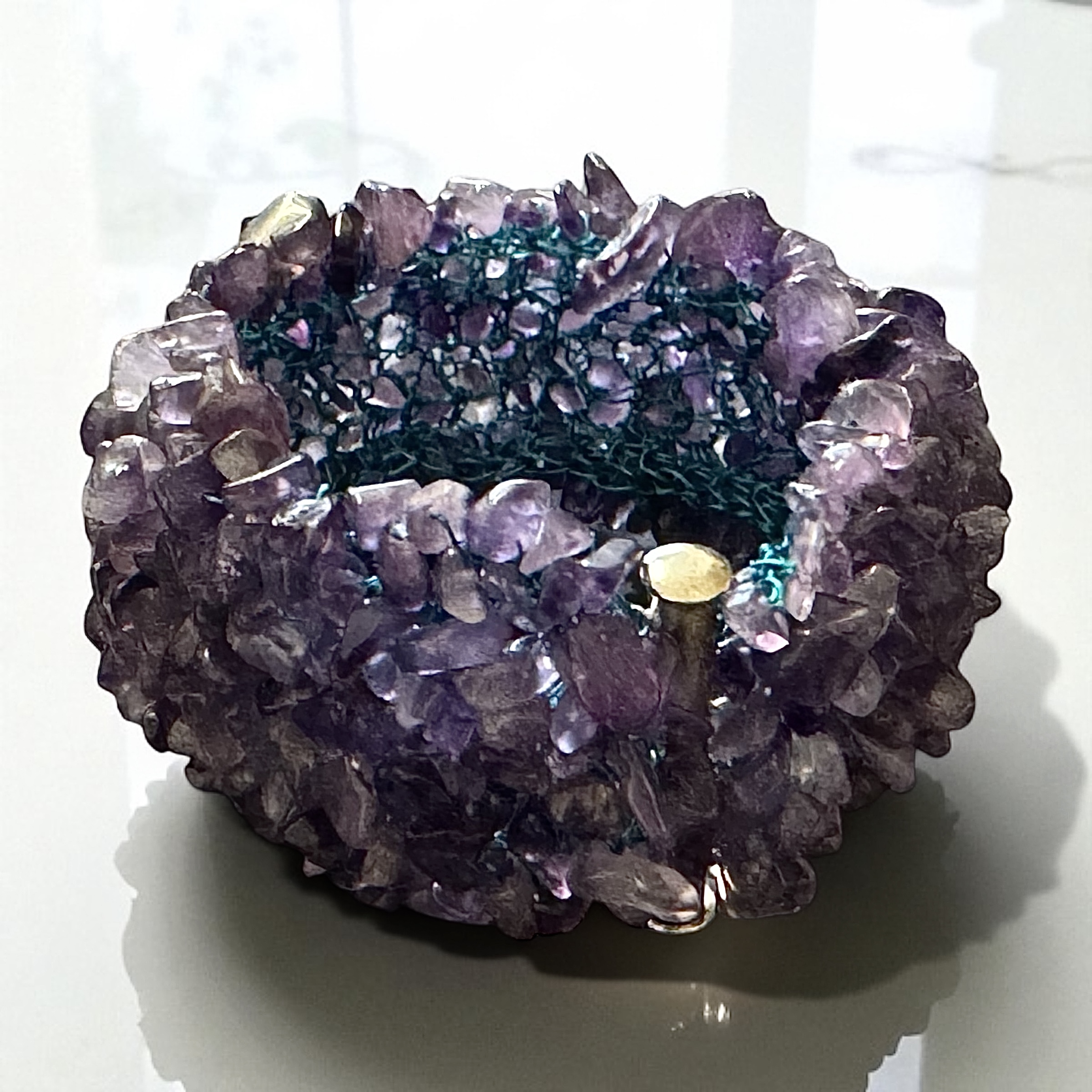 This Gemstone Cuff represents the pinnacle of Sarah Valley’s metalwork artistry. Meticulously handcrafted, each cuff begins with premium stainless steel wire shaped using our signature technique, then accented with your choice of ethically-sourced gemstone cut in distinctive geometric forms. The nickel-free brass clasp develops a rich patina over time, creating a living finish that grows more personal with wear.